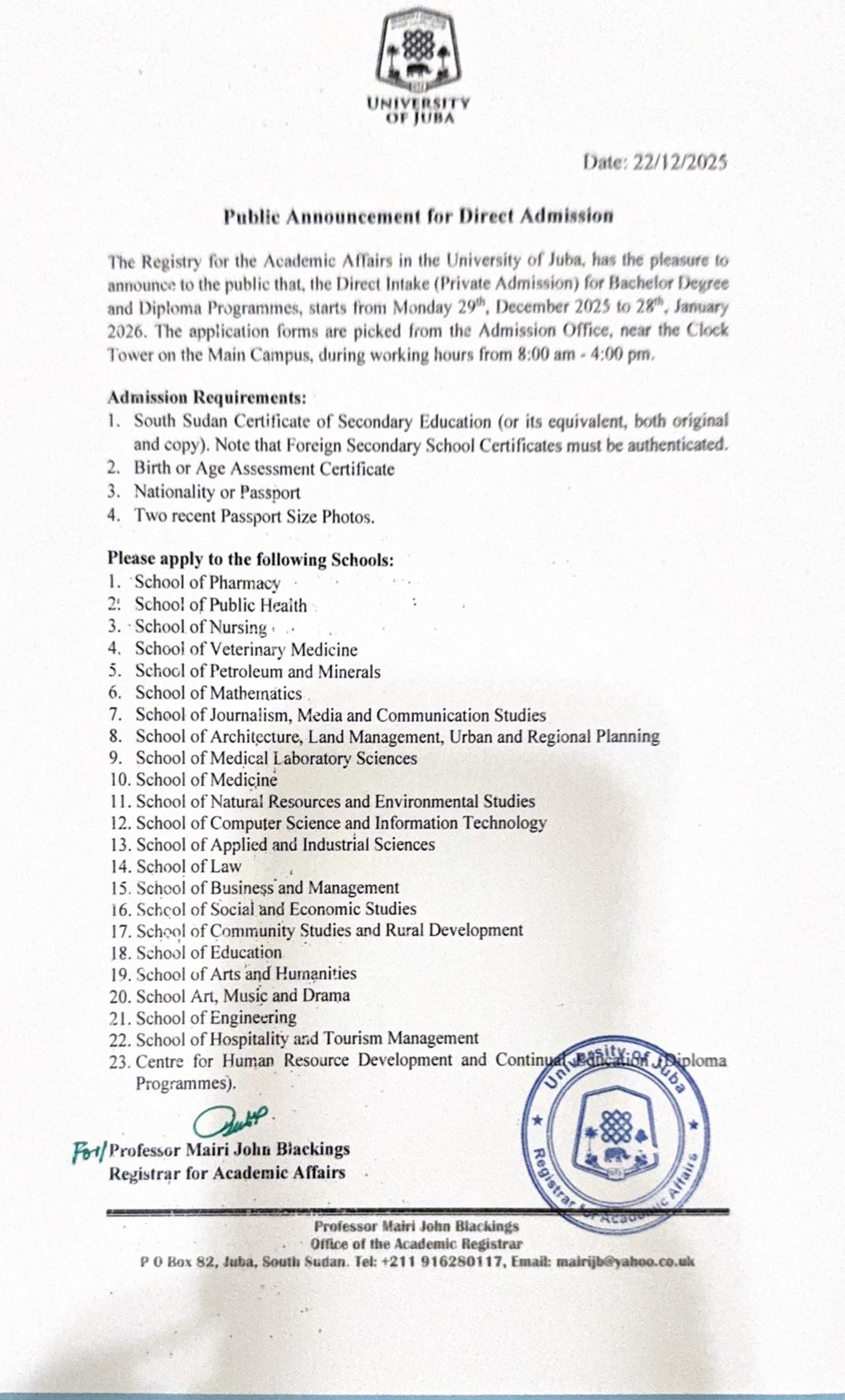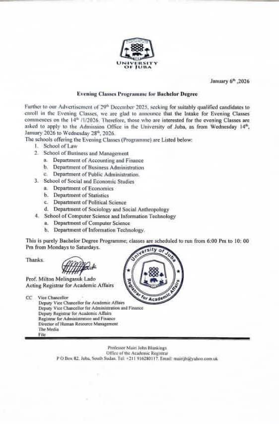 On August 27, 2025, the University of Juba proudly hosted a delegation of Chinese scholars and officials from the Chinese Embassy at the Dean’s Hall in the Main Administration Building. […]